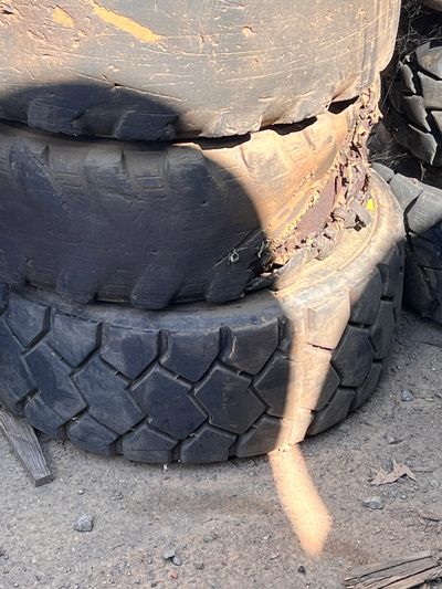 This basically means that your old tire is in good enough condition to be retreaded. In the case of foam filled tires, the value of the cores are greater than air tires on rims because we are reusing the foam, which is in most cases more expensive than the tire itself. Foam filled tires are filled with either a water based or polyurethane foam, which can fail for a few different reasons, and become “soft,” producing a squatted look. The tire often times looks like it’s flat. This is due to disintegrating foam inside of the tire. If your tire is squatted, regardless of the amount of tread or condition of the casing (tire) itself, it’s not viable for retreading.